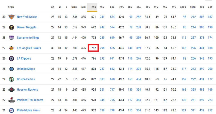说明点:数据。24-25季全明星后湖人首发合计得到2621分,同期联盟第1。替补合计得到787分,同期仅优于尼克斯、掘金和国王。