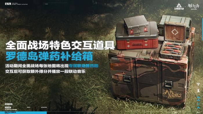 双模式中还增加了联动互动内容,让各位干员可在战场邂逅多个联动彩蛋。在烽火地带地图中干员们可搜索罗德岛补给箱,有机会获得粘土人阿米娅、源石等限定藏品。而在全面战场中将会出现罗德岛弹药补给箱,交互后可以获得一些额外的得分等。