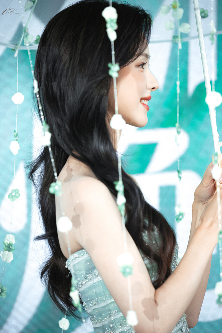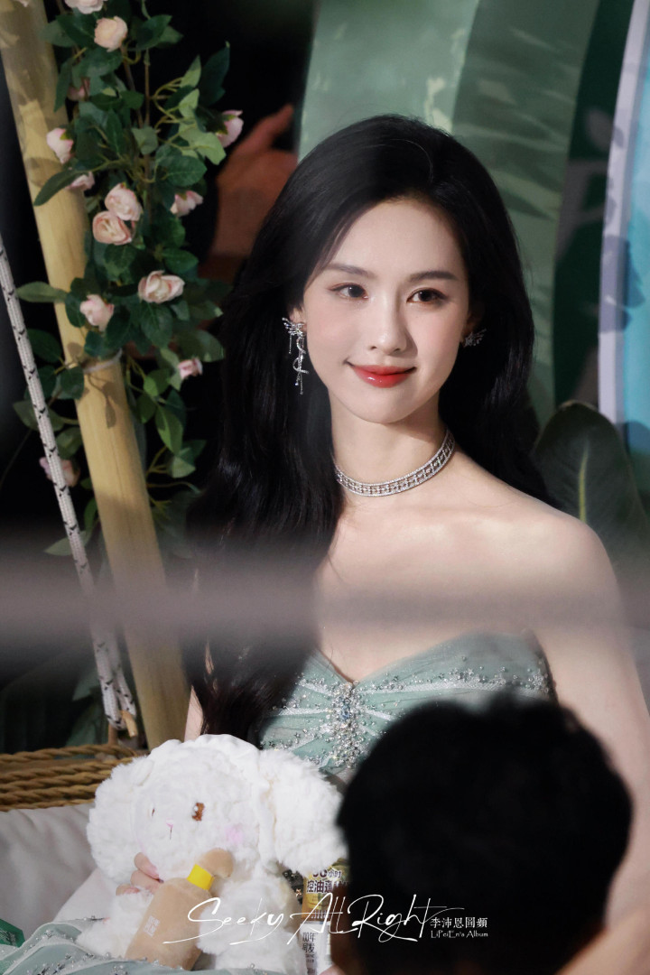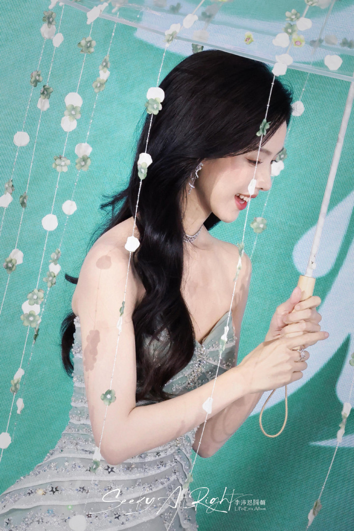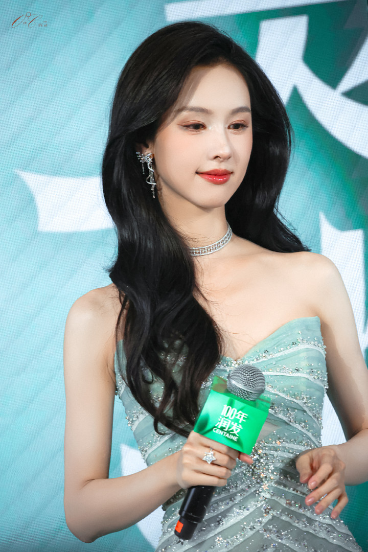 陈都灵穿薄荷色礼裙出现,清新得像春风,整个人都明亮了